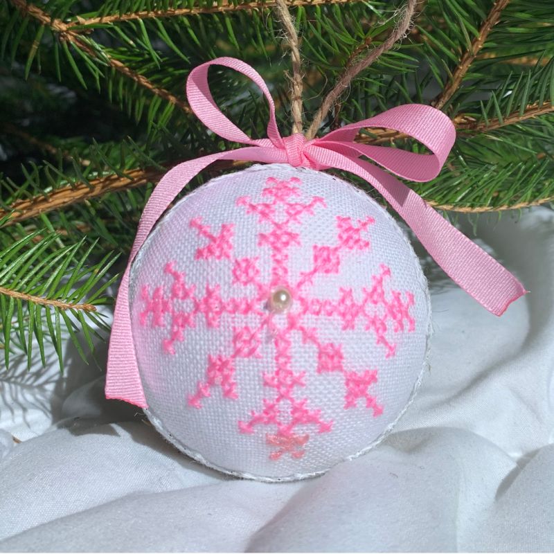 This delicate ornament brings the beauty of snowy winter into your home. The hand-embroidered snowflake creates a perfect contrast that immediately catches the eye. The elegant ribbon and natural jute cord give the ornament rustic charm with a touch of Christmas elegance.