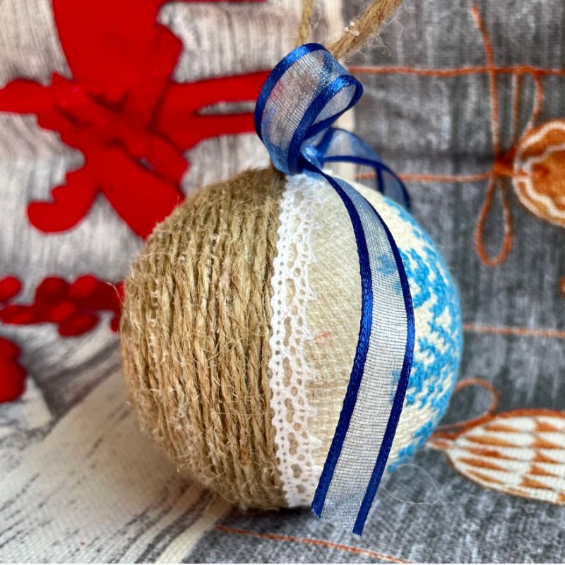 The combination of natural materials – cotton and jute – paired with satin ribbon gives the ornament an authentic rustic character with a touch of Christmas elegance. The satin ribbon beautifully complements the embroidered motif, creating a harmonious whole.