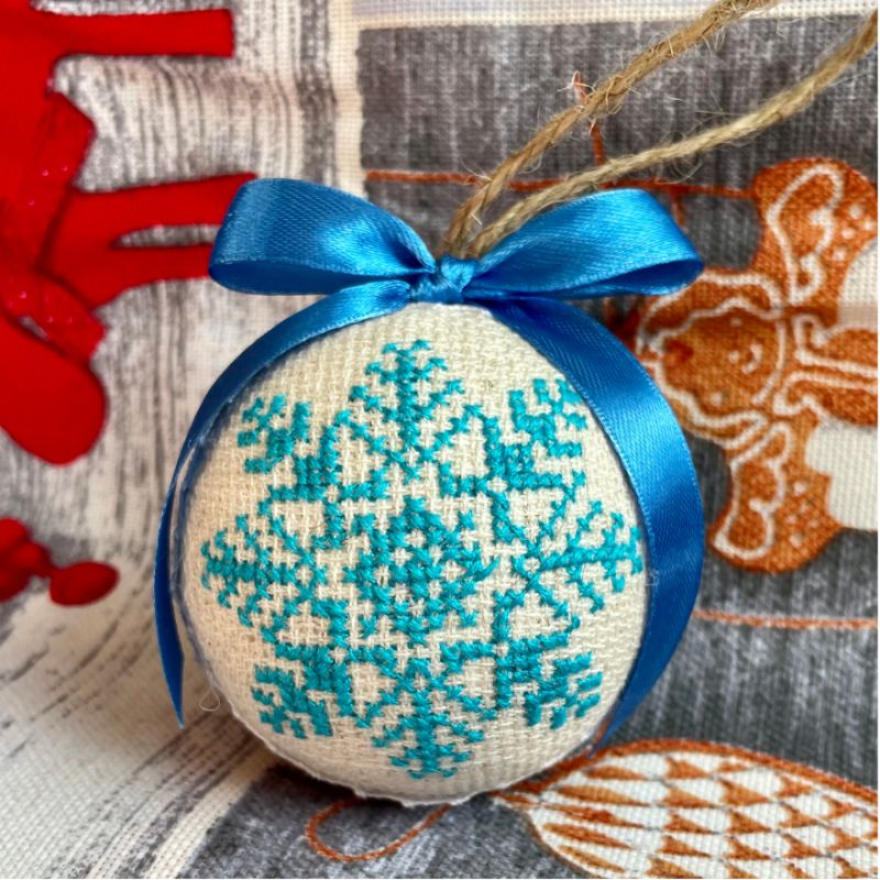 This beautiful Christmas ornament brings the magic of a snow-covered landscape into your home. The hand-embroidered snowflake on a cream background creates the perfect winter motif that immediately catches the eye with its delicacy and precision craftsmanship.