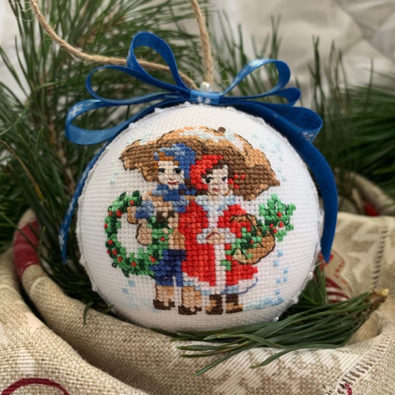 Hand-embroidered designs inspired by vintage Christmas postcards bring the magic of old-time holidays into your home. Delicate cross-stitch embroidery and traditional colors give this ornament a nostalgic charm and the warmth of handmade art.