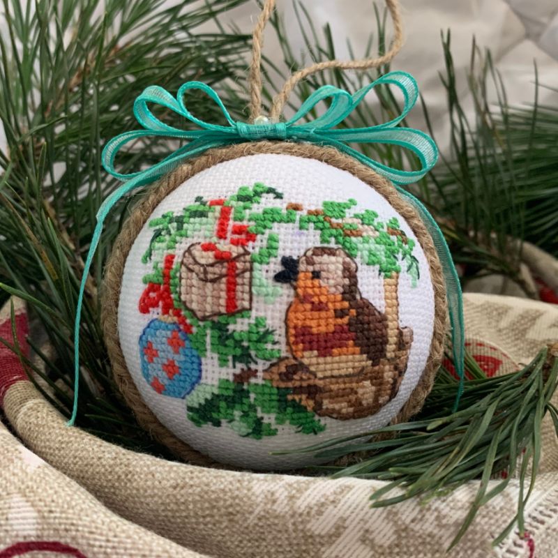 Hand embroidered Christmas tree ornament Bird In The nest.